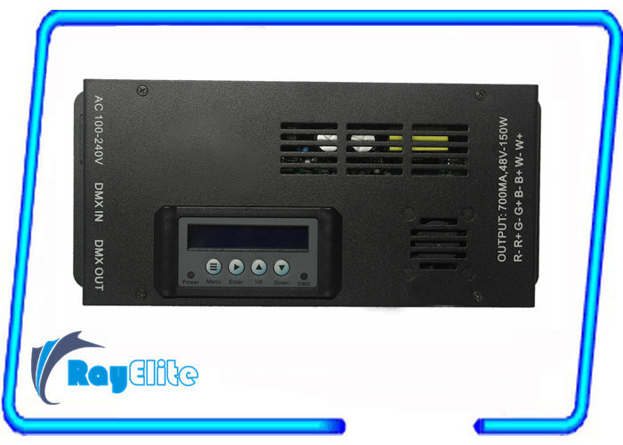wall mount, high quality high efficency PFC power supply with CE RoSH SAA C-tick approval from meanwell, refresh rate 1000HZ for TV studio or stage venue,free flickering,RGBW 4CH 700MA output,high efficency high reliability, silent fan for cooling, new firmware updatable via DMX port.